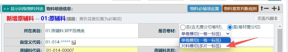 图示第一条明细为常规卷料,按正常的卷料用量来录入资料