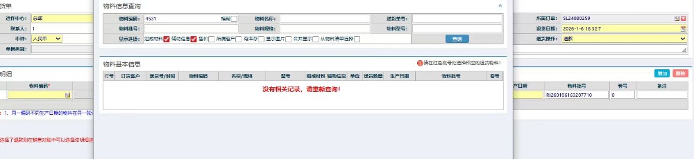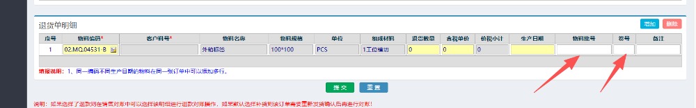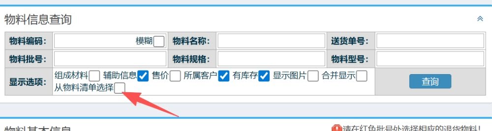 答:超过一年的退货,勾上这个“从物料清单选择明细”按钮去查询操作