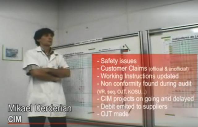 比如生产计划达成率应该是在90%以上,但是前一天只完成了70%,这个指标的负责人 — 生产计划员就需要在绩效展示板上写下70%的达成率,在调查清楚情况以后,汇报给其主管。