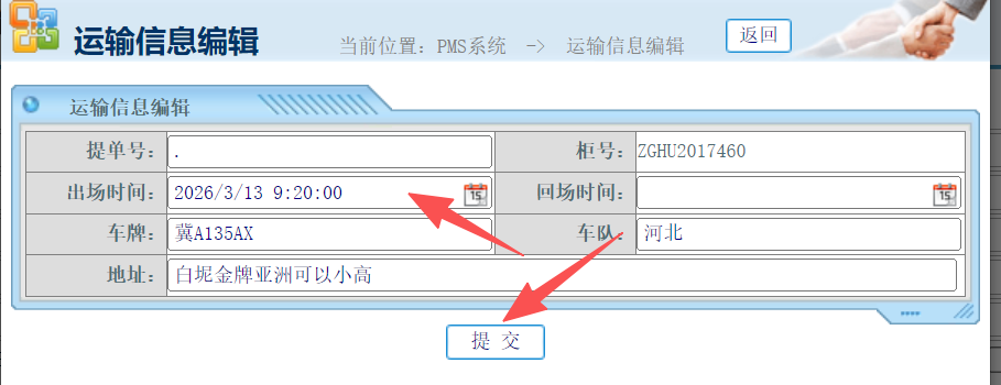 点晴PMS码头集装箱散杂货管理系统如何修改运输单的出场时间
