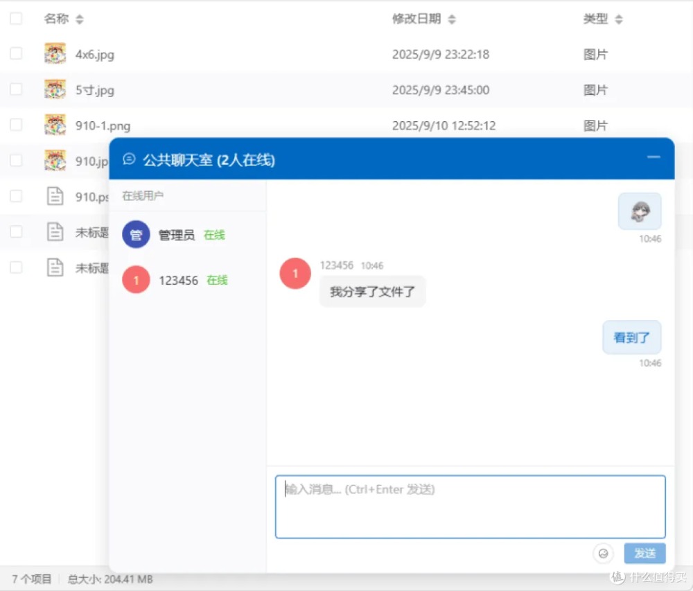 内置聊天室,边传文件边沟通,告别微信来回甩链接的繁琐。