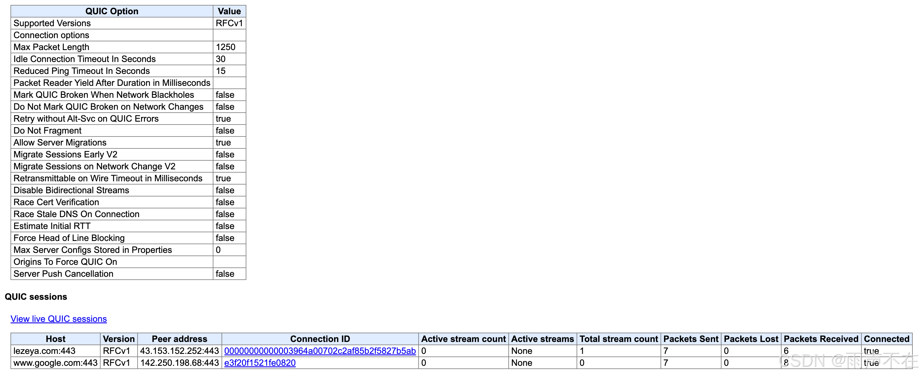 浏览器查看quic连接信息