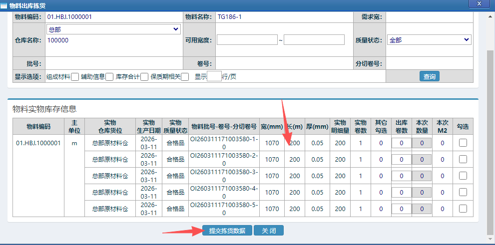 选择批号,填好数量,回到主页面,点击提交即可;如图示: