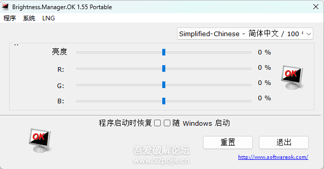 一、发布原因:由于前面大佬发布的主题自动关闭,不再接受新的回复,故更新新版本需要重新开帖。 二、工具简介:Brightness.Manager.OK是一款Windows专用、轻量免安装的屏幕亮度调节小工具,专门解决台式机、部分笔记本/显示器无法用快捷键调亮度的问题。 三、工具基本信息: 1.名称:Brightne...