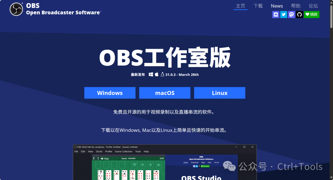 工具介绍:OBS在当下这个内容创作与传播极为活跃的时代,直播与录屏已经成为大众分享生活、展示才华、学习交流以及开展工作的重要方式。无论你是想要直播精彩的游戏过程;期望录制高质量的教学视频。都离不开一款强大的工具。今天要推荐的工具是一款开源且免费的专业级直播与录屏软件OBS,支持Windows、macOS、Linux等多...