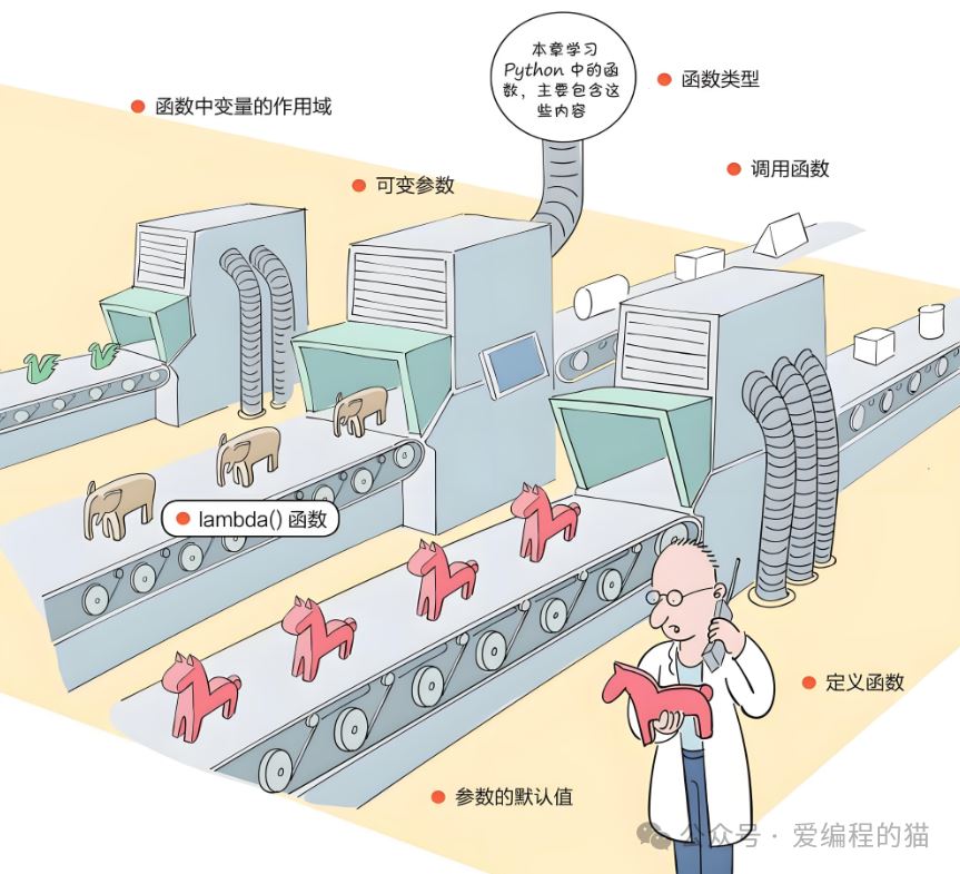 导读简要介绍:本文改编知名作家-关东升,一个在IT领域摸爬滚打20多年的老程序员、软件架构师、高级培训讲师、IT作家。8.1定义函数自定义函数的语法格式如下:以英文半角冒号结尾例代码如下:8.2调用函数在定义好函数后,就可以调用函数了,很简单!8.2.1使用位置参数调用函数在调用函数时传递的实参与定义函数时的形参顺序...