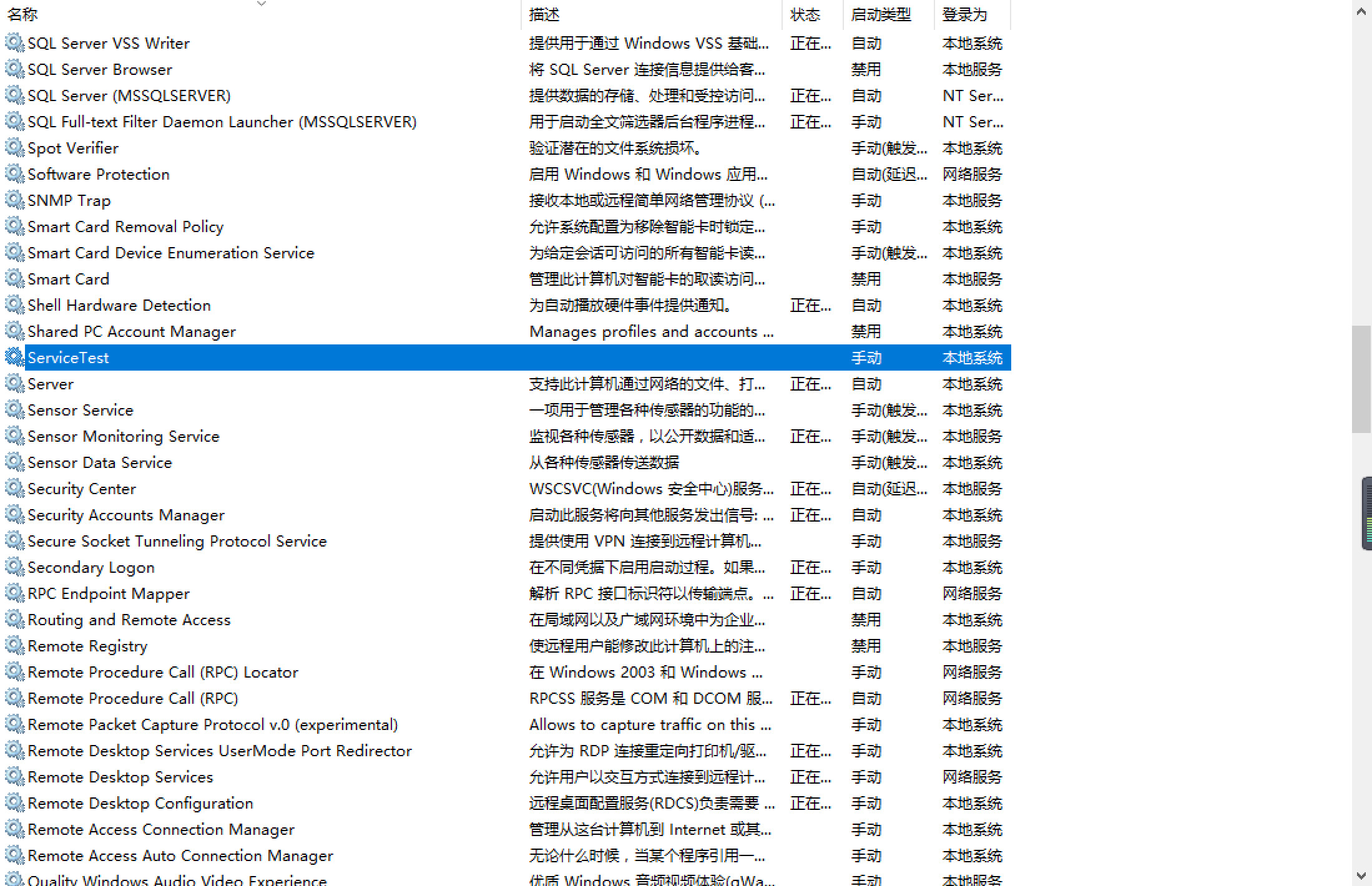 卸载很简单,打开cmd, 直接输入 sc delete ServiceTest便可。
