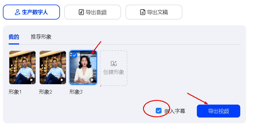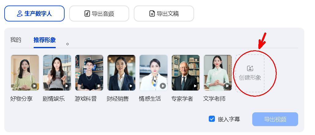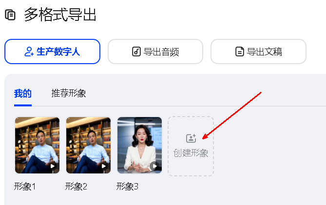 如果还没有数字人,点击“创建形象”