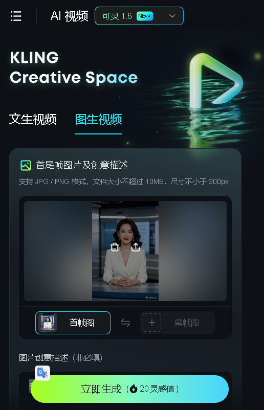 将刚才的超清的图片上传可灵 AI 的图生视频功能,注意模型一定要选 1.6