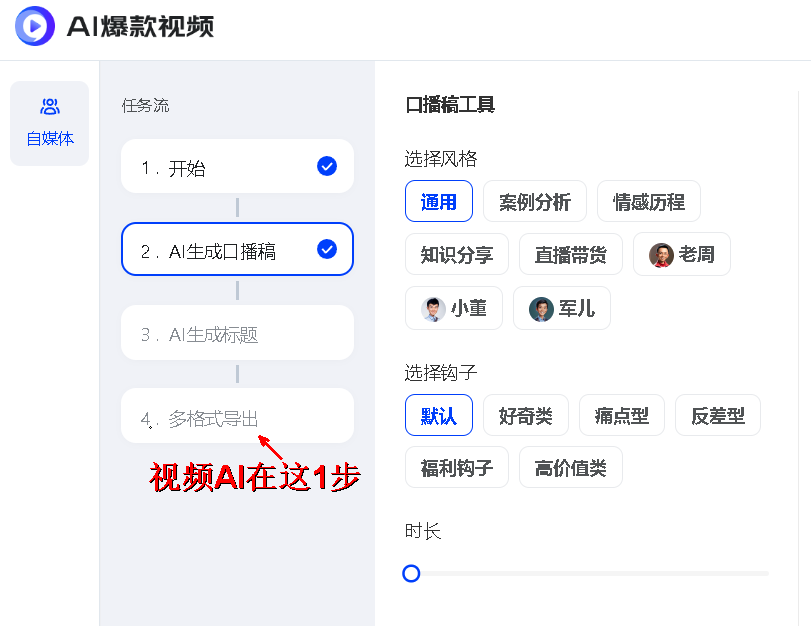 从生成口播稿、爆款标题一路点击下去,到“多格式导入”