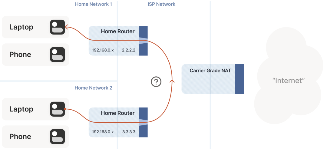 但有了 CGNAT 之后就不管用了,因为你无法控制运营商的 CGNAT!