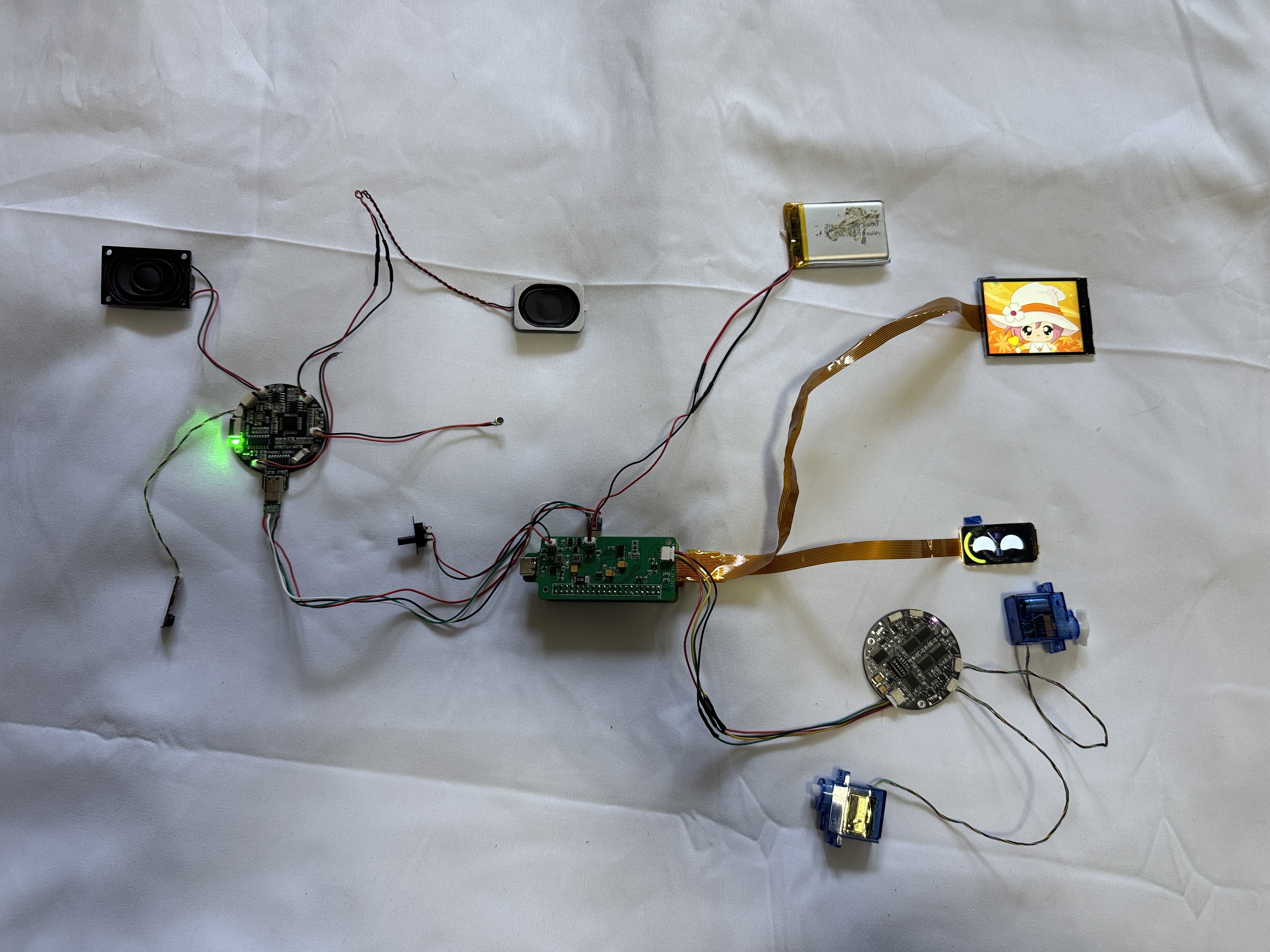 ElectronBot是稚晖君(B站一个有名的UP主)制作的一个开源的必须连接电脑的桌面机器人,我和网友在他的方案基础上优化了电路板出了一个ElectronBot精英版A2的版本,现在我通过用树莓派替换了ElectronBot的屏幕控制和舵机控制部分,实现了一个独立的版本,我为了省事,就借用了ElectronBot的两个电路板,省的自己设计了。