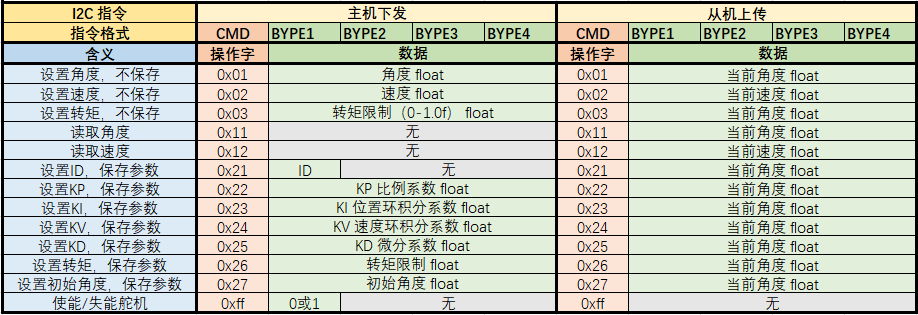 1. 首先我们象征性的看下舵机板子的固件代码,舵机控制板使用STM32F103标准库硬件IIC+DMA的类似方案进行数据读写,有社区的人进行了优化,但是核心代码大体相同,改装的舵机板比舵机原始的只支持角度控制有更多的玩法。参考如下文档: