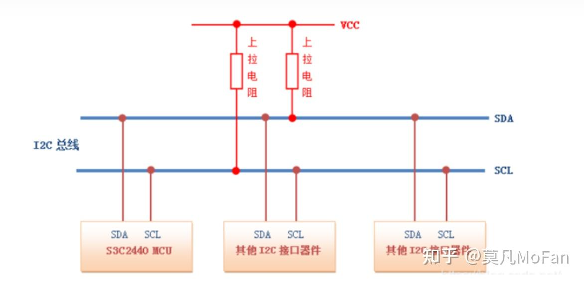 I2C(Inter-Integrated Circuit),读作:I方C,是一种同步、多主多从架构、双向双线的串行通信总线,通常应用于短距离、低速通信场景,广泛用于微控制器和各种外围设备之间的通信。它使用两条线路:串行数据线(SDA)和串行时钟线(SCL)进行双向传输。