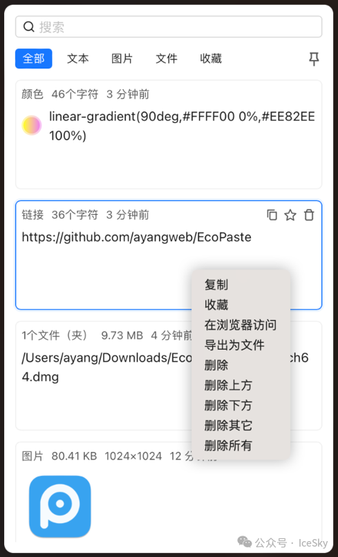 下载地址:https://github.com/EcoPasteHub/EcoPaste/releases 或者https://ecopaste.cn/download/index