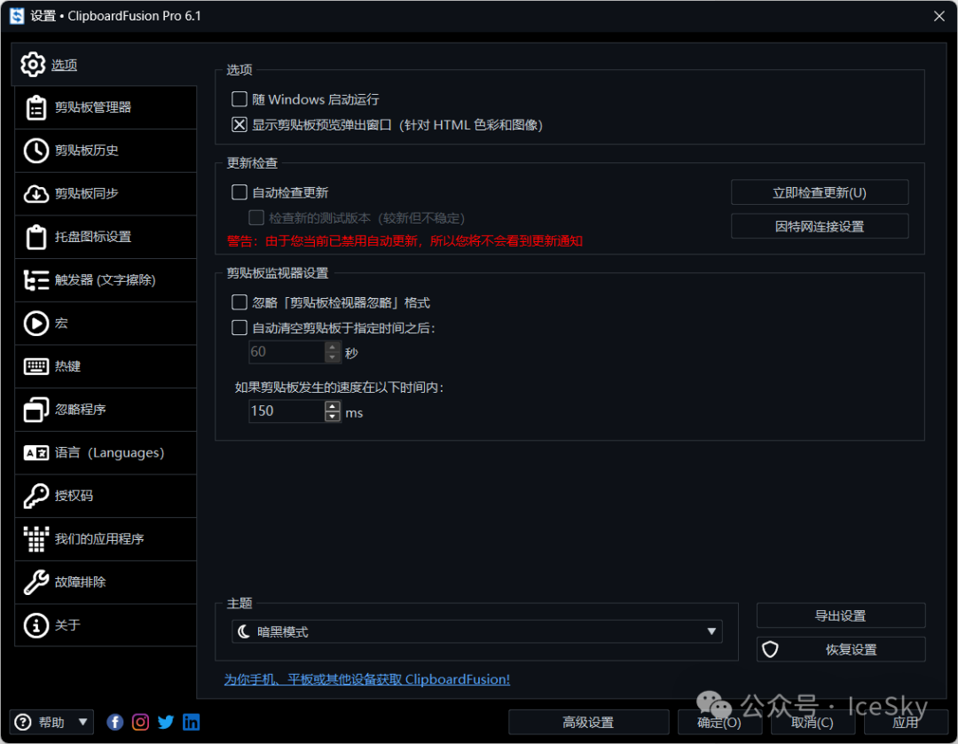 可以忽略从某些窗口复制或包含一些文本的剪贴板