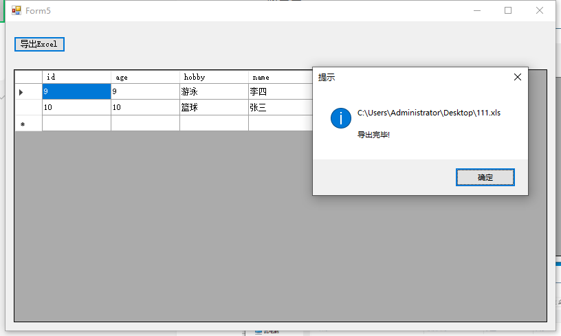 MessageBox.Show(fileNameString + "\n\n导出完毕! ", "提示 ", MessageBoxButtons.OK, MessageBoxIcon.Information);}