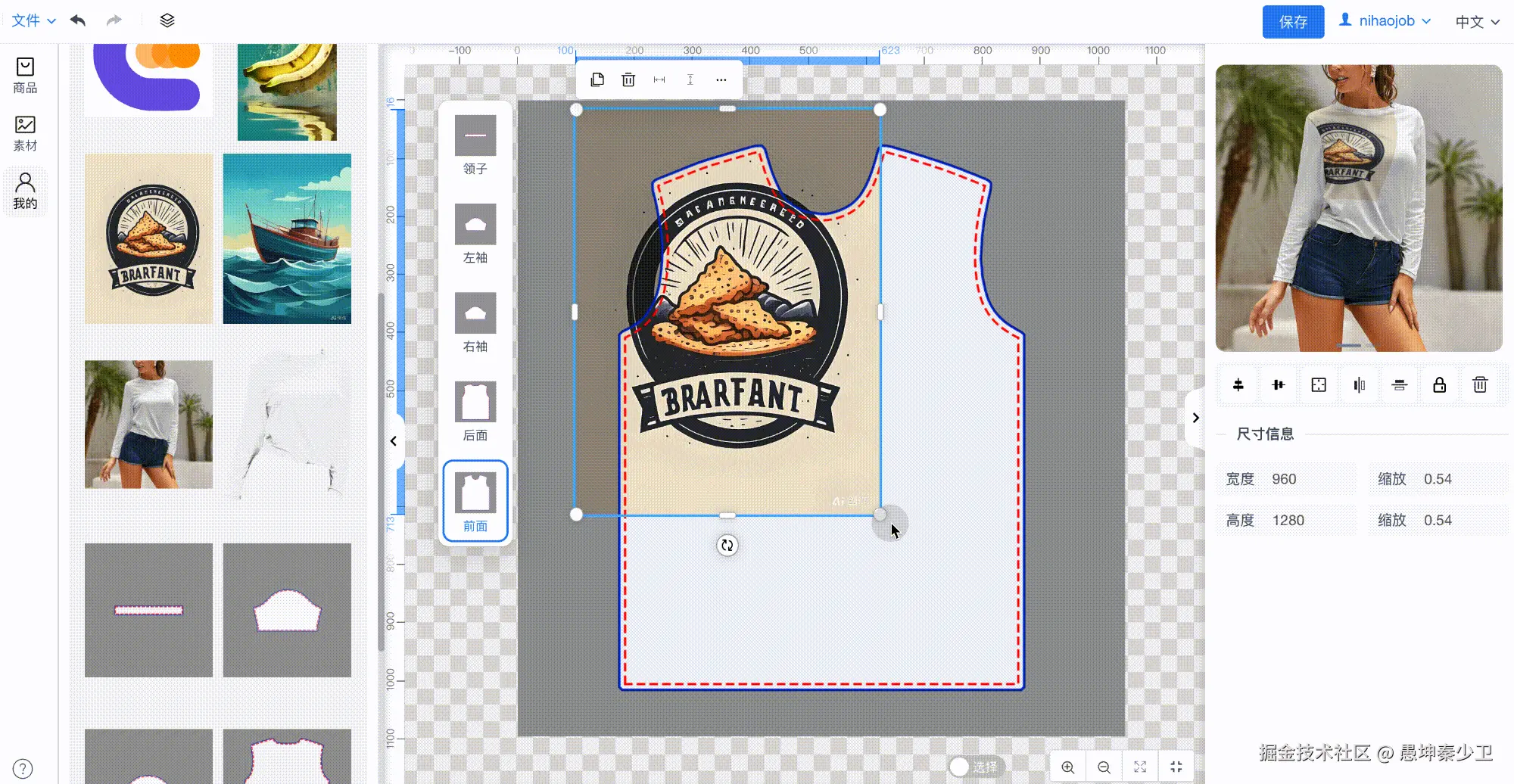 服装/商品定制是让用户在设计平台上上传图片,然后将图片贴图到对应的商品模板上,实现让用户快速预览设计效果的需求