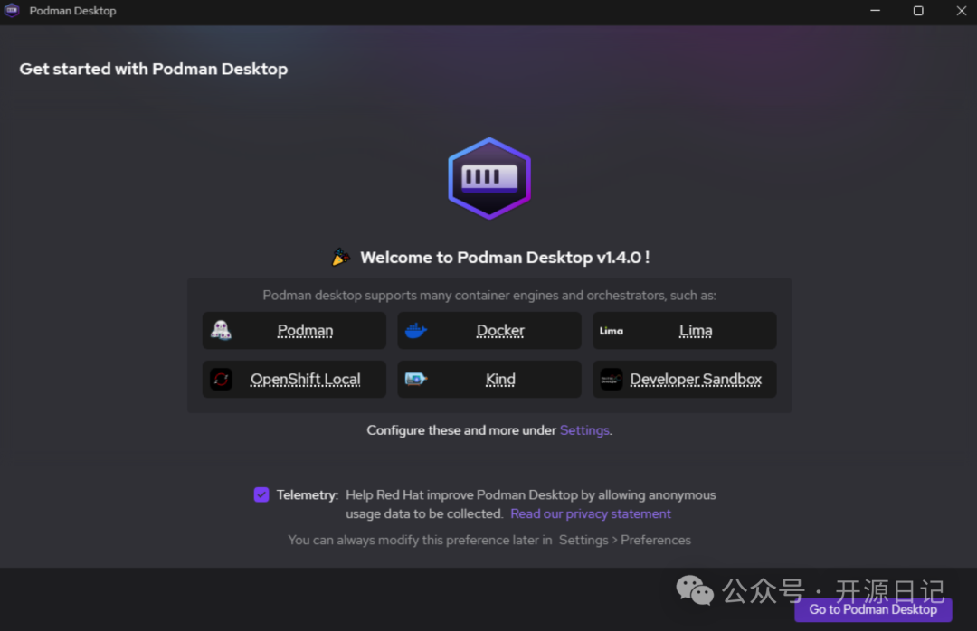 3 .安装完成后,启动 Podman Desktop,在图形界面中探索容器管理的无限可能!