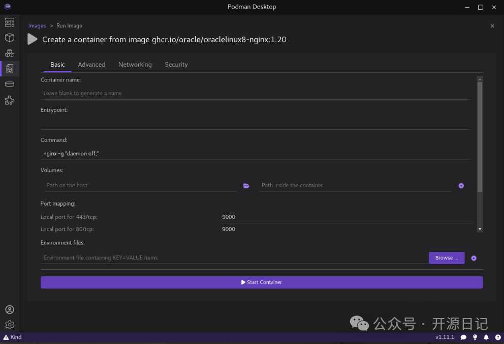 💡 快速任务:尝试从现有镜像(如 nginx:latest)启动一个容器。只需点击几下鼠标,即可完成启动、配置网络、绑定卷等所有功能!