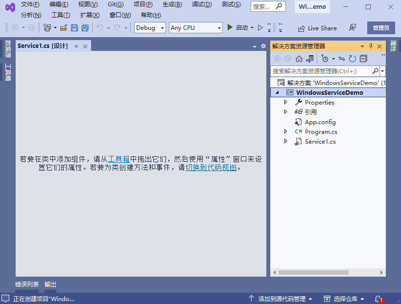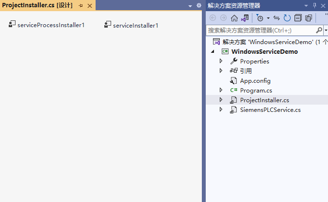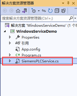2、项目名称为WindowsServiceDemo,项目创建完成后如下:
