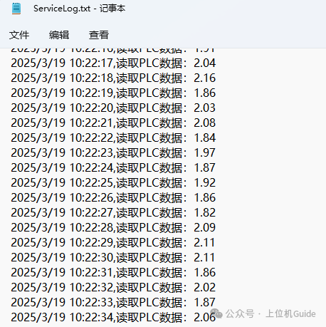 4、观察D盘文件,可以看到PLC的数据每秒会存一次到指定文件中: