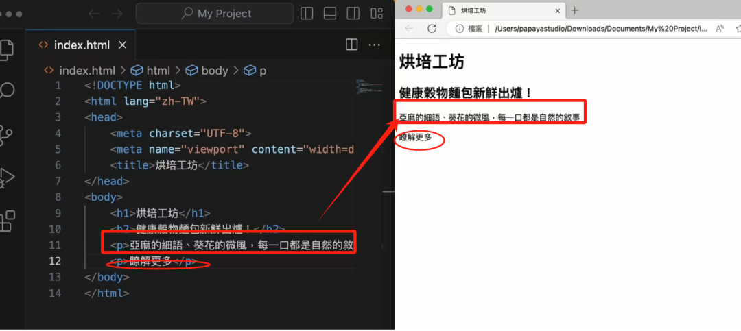 到这里,不知道你有没有发现:不管是<heading>标签或是<p>标签,不管它们的字数有多少,都会占据一整行。