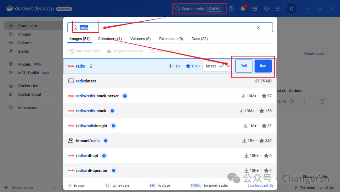 直接搜索,选择版本,选择pull或者run