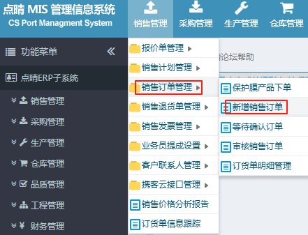 1.首先打开ERP系统,点击销售管理 > 销售订单管理 > 新增销售订单