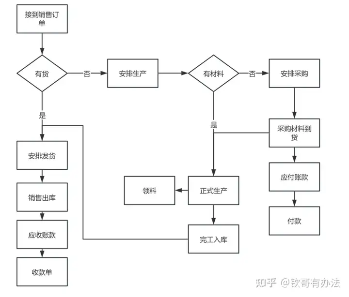 这就是大部分生产贸易型企业的业务,当然了,反向的流程我没说,但是就是反过来而已。比如产品退货、采购退货、生产退料等等。