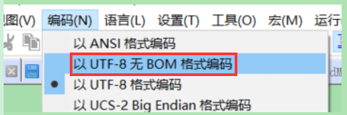 这个时候,再用notepad++打开该文件,你会发现该文件编码集已经发生了改变: