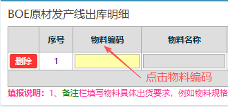 3.接着在界面中填写“物料编码”,点击编码会弹出物料信息窗口。