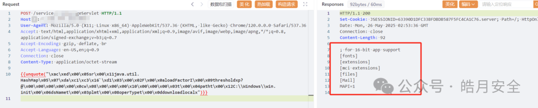 获取HTTP数据包中的输入流,存入输出流in2中,然后调用readObject()方法对输出流in2进行反序列化,转换对象为一个hashmap数组headInfo,从headInfo中获取dsName和operType,当operType不为upload时,调用doDownLoadFile(headInfo, response);