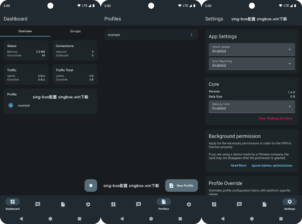 sing-box Android 安卓版本运行截图: