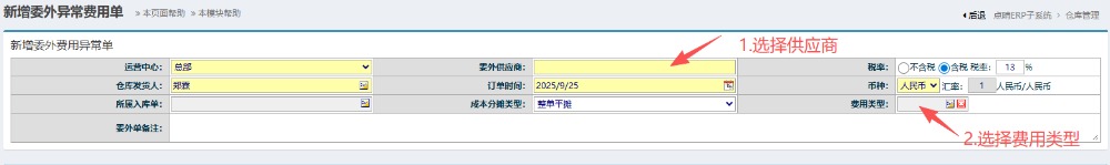 2.进入界面后,选择对应供应商以及费用类型。