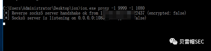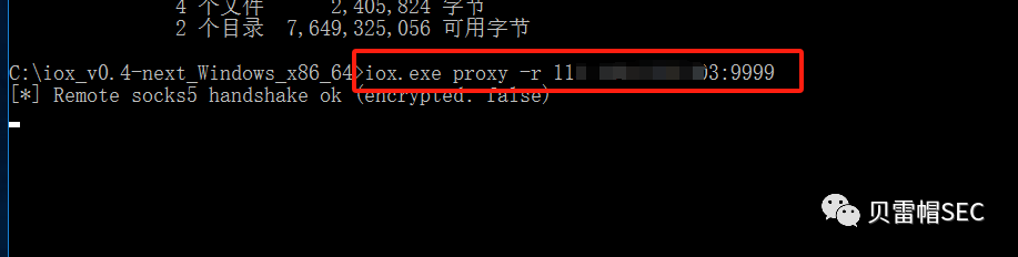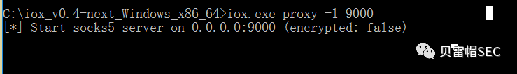 ./iox proxy -l 9999 -l 1080       // 注意,这两个端口是有顺序的