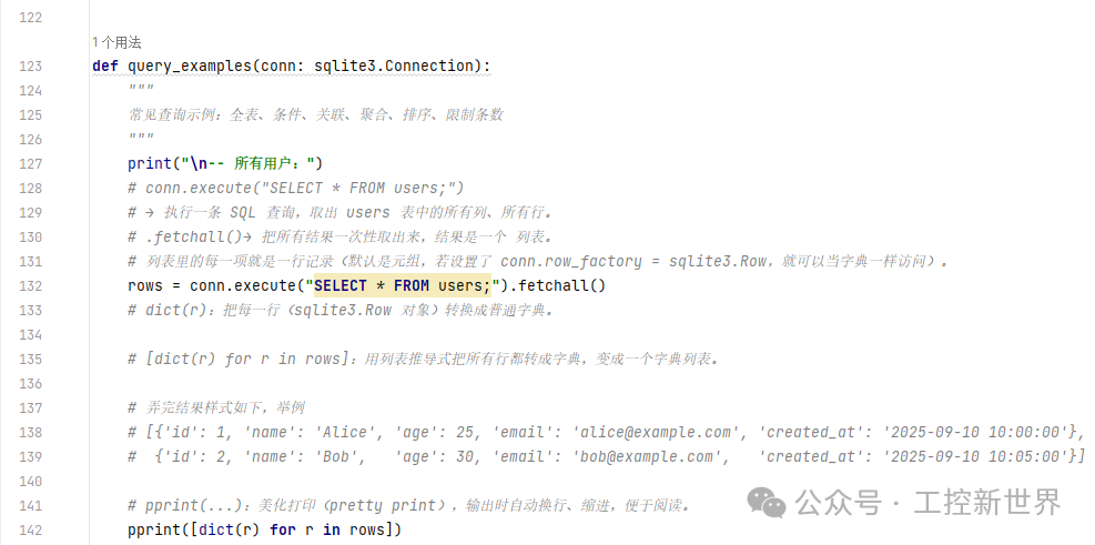 -(若设置了 conn.row_factory = sqlite3.Row)把每行转成字典,再美观打印。