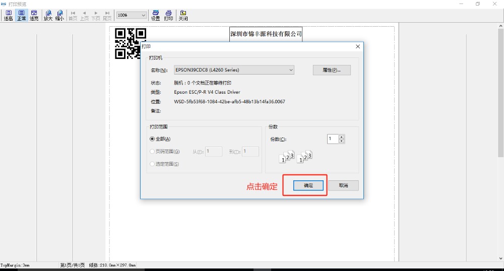 4.接着跳转到打印预览界面,根据情况设置打印内容,点击打印 注:以下图是测试例子,具体请根据实际操作。