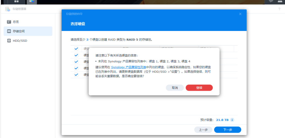 选择windows版本,因为我的电脑操作系统是windows版本。这时需要将NAS连接到公司网络中,最好在同一个局域网。如果不在同一个局域网,或者无法获取ip地址,就容易显示联机失败。将NAS服务器的网口连接到公司的网络中,通过自动获取IP地址。虽说现在NAS还没有操作系统,但是默认NAS的网卡,就是可以通过自动获取IP地址。这时,可以直接双击系统未安装,可以跳出来下面系统安装界面172.16.35.128,安装系统界面,这个系统,是可以通过web网络联网来安装操作系统的。选择从群辉网站上下载并安装最新版本的DNS7.2.2这个版本的操作系统。当出现下面的界面的时候,就说明NAS的操作系统,已经成功安装完成了。系统已经是确定安装完成了,那现在还需要对硬盘进行创建磁盘空间。这时就正在格式化,这个RAID5空间了。这个格式化需要好几个小时才能完成。这时系统和空间都已经格式化成功,这时就可以创建共享文件夹了。