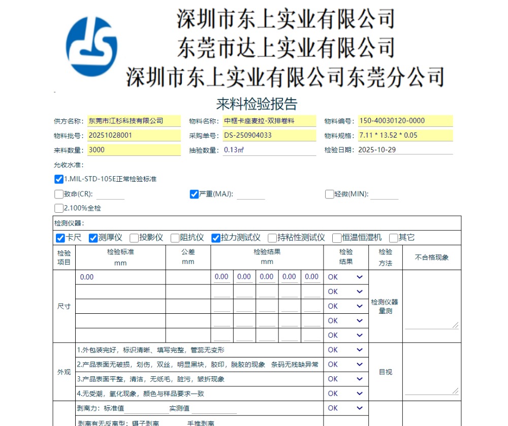 点晴模切ERP-新增来料品检报告-操作步骤