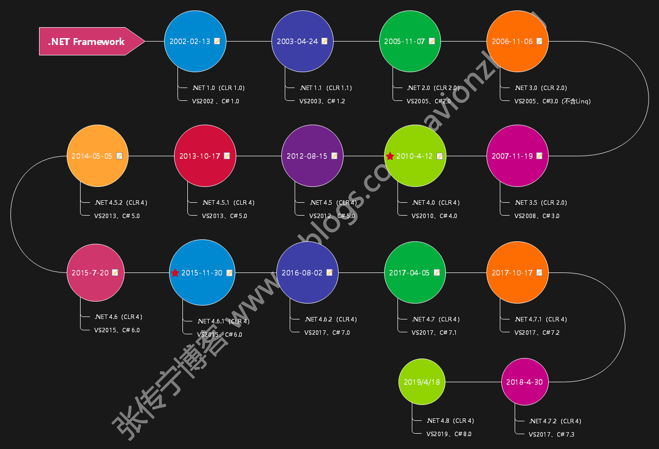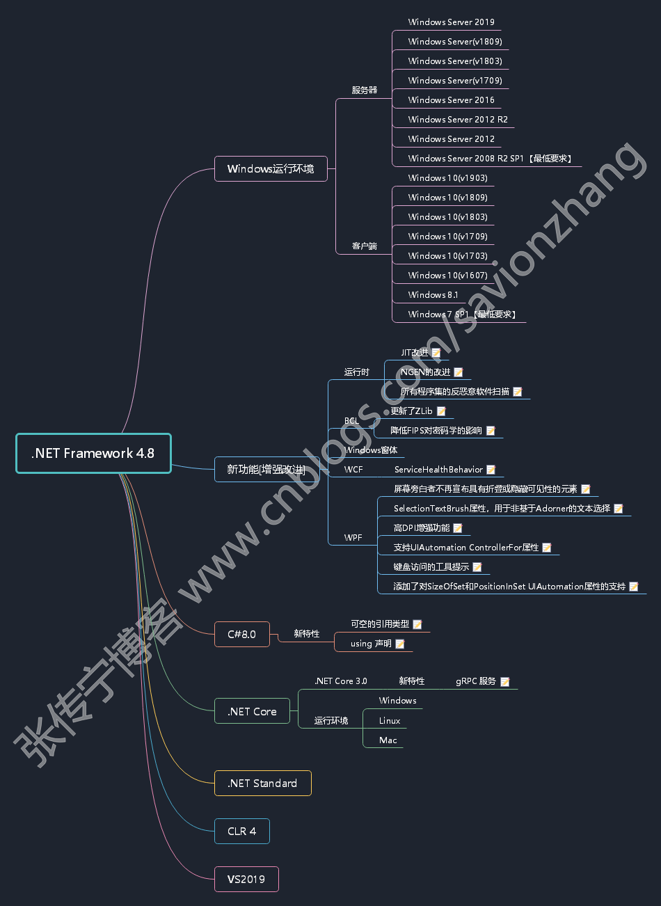 .NET Framework 从1.0发展到4.8版本,由于每个版本的功能设计与发行目标不同,运行时、开发工具、编程语言、支持的Windows版本等有不同的差异,下表列出了详细的对比信息。