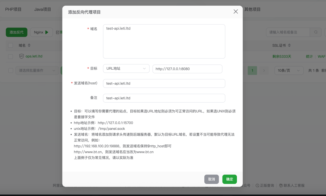在宝塔面板中,配置反向代理几乎是“傻瓜式”的操作。对刚开始自建服务的人来说,它既直观,又高效。一台服务器,也能支撑起你的小宇宙。