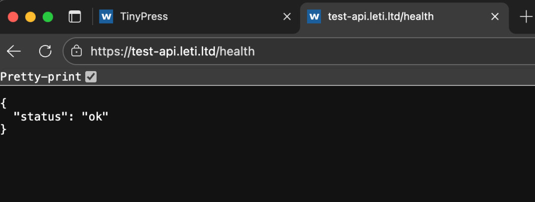 我演示的有两个应用,一个 go 写的API 应用,一个 Vue 写的前端站点。需求是我要使用https://test-api.leti.ltd/ 来访问 API,使用https://test-web.leti.ltd/ 来访问前端的站点。
